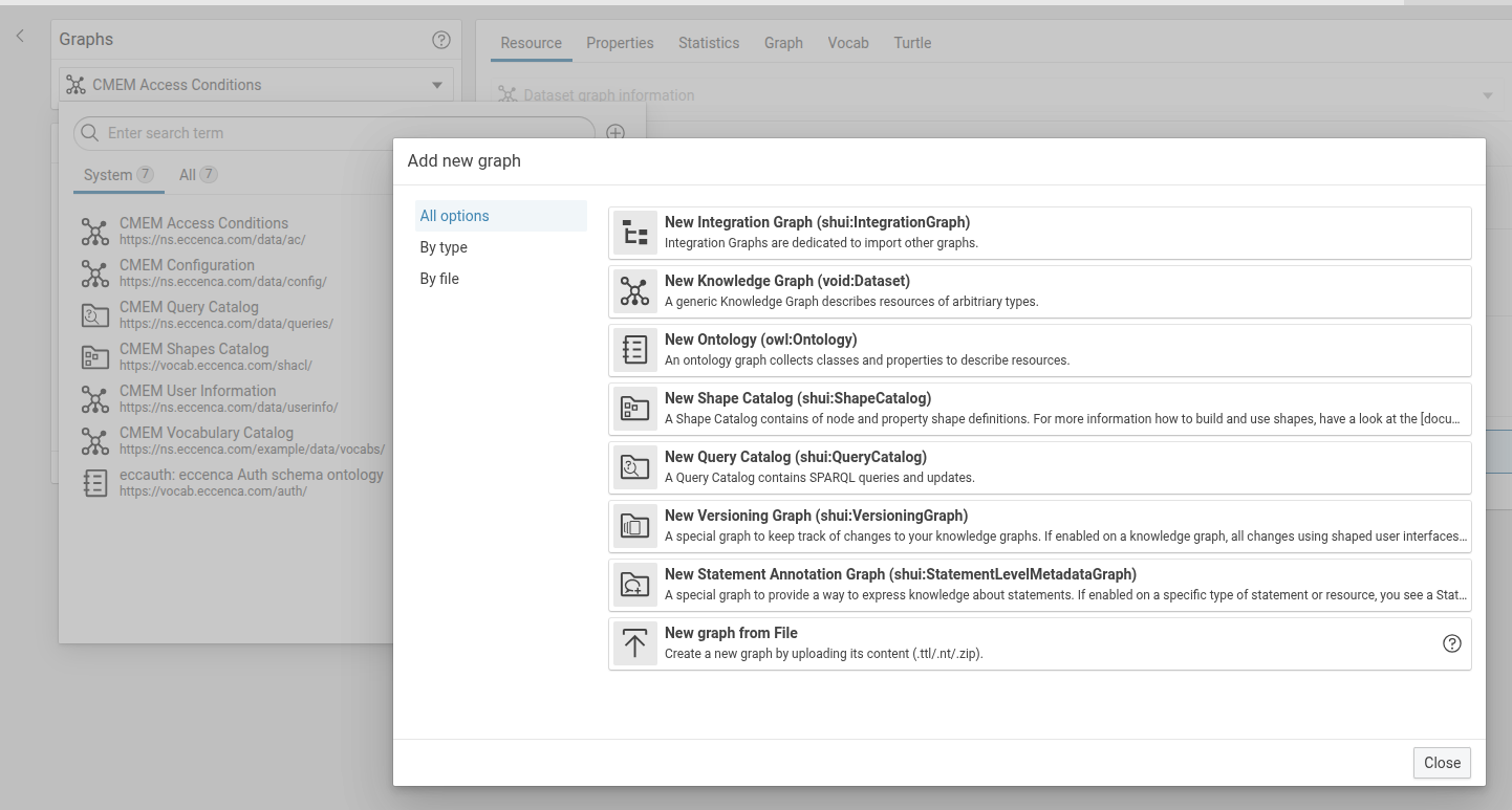 In the Graphs drop-down menu, click the (+) button and select New Ontology (owl:Ontology).
