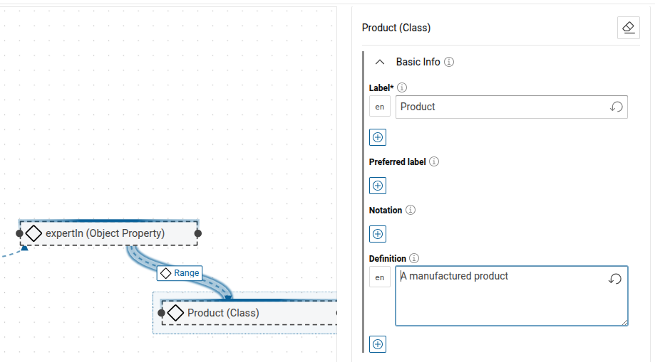There are other ways to create new classes and properties in Corporate Memory, for example by using SHACL shapes. Business Knowledge Editor provides an intuitive diagram-based approach that simplifies this process.