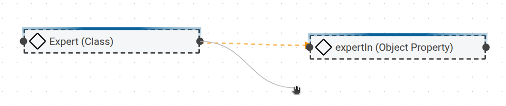 Click and hold the connector dot at the right edge of the class to begin drawing an arrow, then connect it to the connector dot at the left edge of the object property.