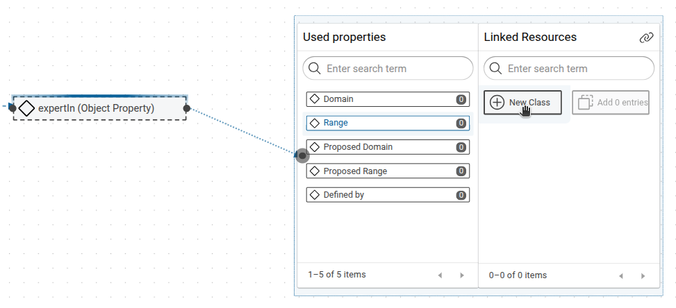 Click the right-side edge of the object property and select Range. This adds New Class on the right side.